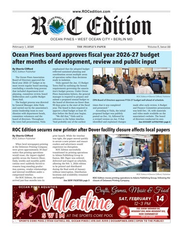 ROC Edition • Sherrie Clifford, Publisher OPA Board of Directors approves FY26-27 budget well ahead of schedule.