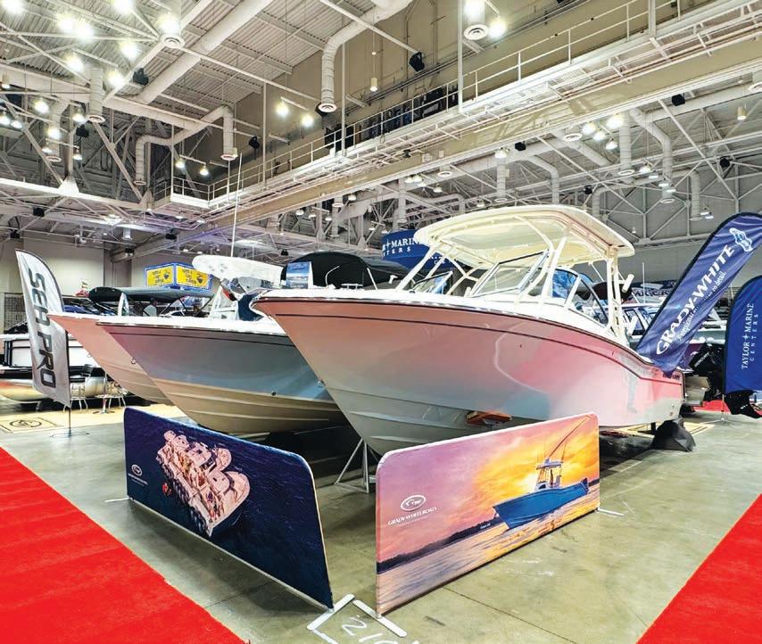 Beyond the boats, the show highlighted the broader coastal lifestyle. Fishing outfitters, including Coastal Fisherman magazine and Pure Lure Reel Fishing Gear, connected with anglers preparing for spring runs.