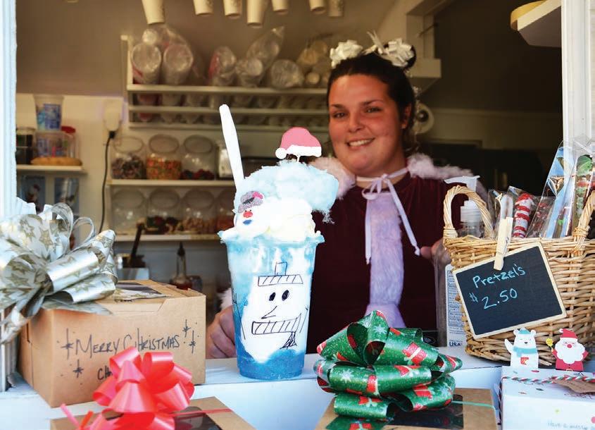 Santa Frozen Cocoa and Grinch snowballs highlighted The Snow Market on Dec. 22 at The Snowball Stand. Holiday-themed treats were specially offered during the event as well as Christmas gifts from bracelets to warm winter hats to ornaments shaped like snowballs. ROC Edition staff was there and News Editor Susan Canfora was all smiles as she asked the jolly elf for her dream car, a 1970 Corvette Stingray.