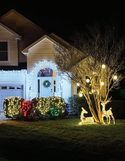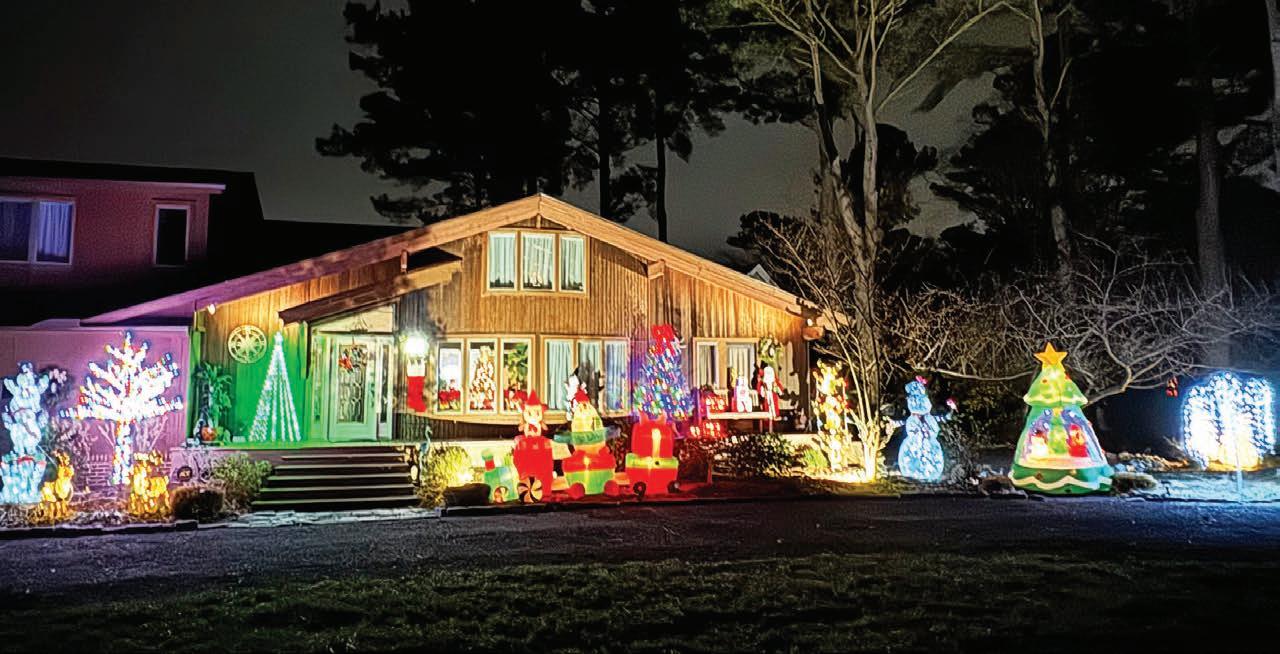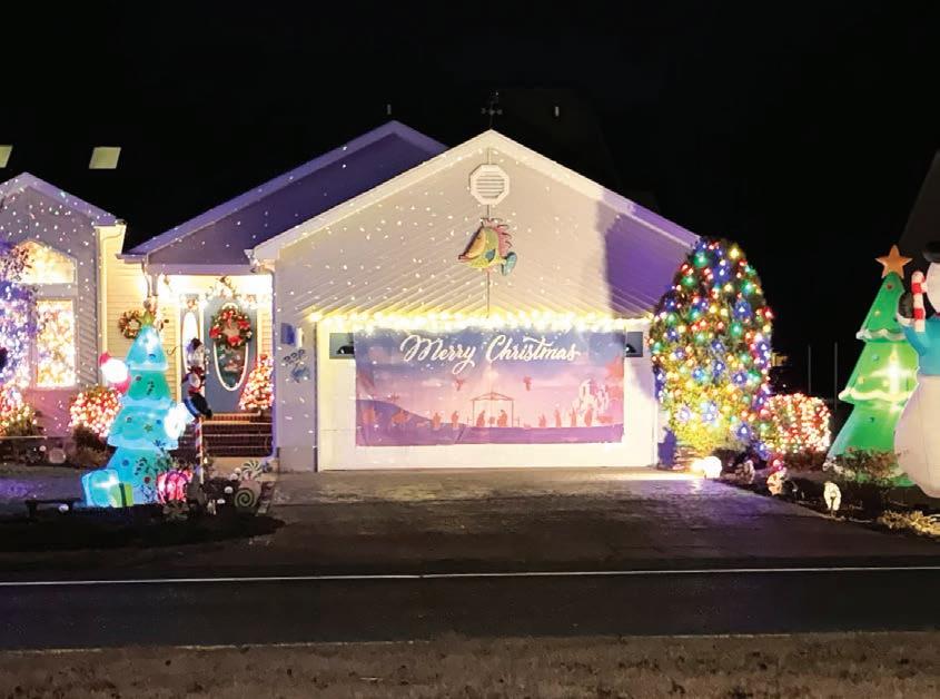 All is bright in Ocean Pines this holiday season as residents’ creative displays illuminate each night. Yards are aglow with festive decorations, lending a sense of warmth and cheer. A number of exhibits are air-powered, with some front yards adorned with towering inflatable Christmas trees and snowmen.