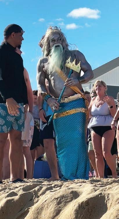 Participants in the annual Penguin Swim, including ROC Edition reporter Tessah Good, above with boyfriend Philip Robert, and Poseidon, right, enjoy the annual event.
