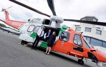 The first of six AW189 helicopters in the new fleet landed at Weston Airport in Dublin in August 2024, attended by (from left) Micheal O’Toole Director for the Irish Coast Guard; James Lawless TD, Minister of State at the Dept of Transport with responsibility for the Coast Guard; and Joanna Cullen, Assistant Secretary, Irish Coast Guard. (Pic: Maxwells)