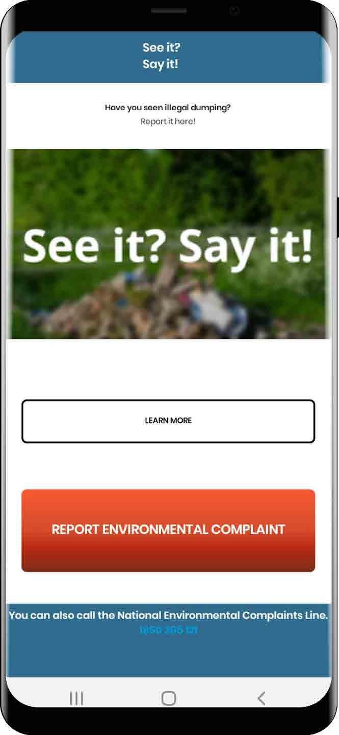 Reporting Pollution: The ‘See it? Say it!’ smartphone App, which can be downloaded from the Apple Store or Android Play Store, making it easy to report environmental pollution and to submit a photo at the touch of a button.