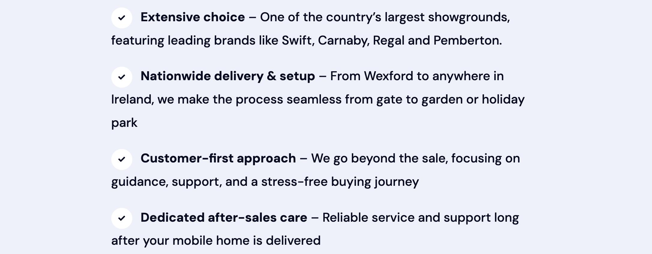 Our mission goes beyond simply making a sale — we are committed to delivering an exceptional experience from the moment you arrive. Whether you’re considering a new or pre-owned mobile home, our knowledgeable team is here to guide you through every step of the process with clarity and care. From professional advice and seamless nationwide delivery to reliable after-sales support, we strive to make your journey as straightforward and enjoyable as possible. At Wallace Mobile Homes, we don’t just provide homes — we help you create lasting memories with confidence and peace of mind.