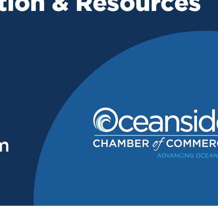 On behalf of the Oceanside Chamber of Commerce Board of Directors and Staff, we extend our heartfelt thanks for your continued investment in the Chamber. Your support is crucial to advancing our shared vision of a Thriving and United Oceanside.