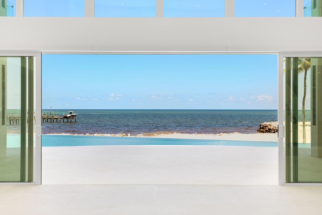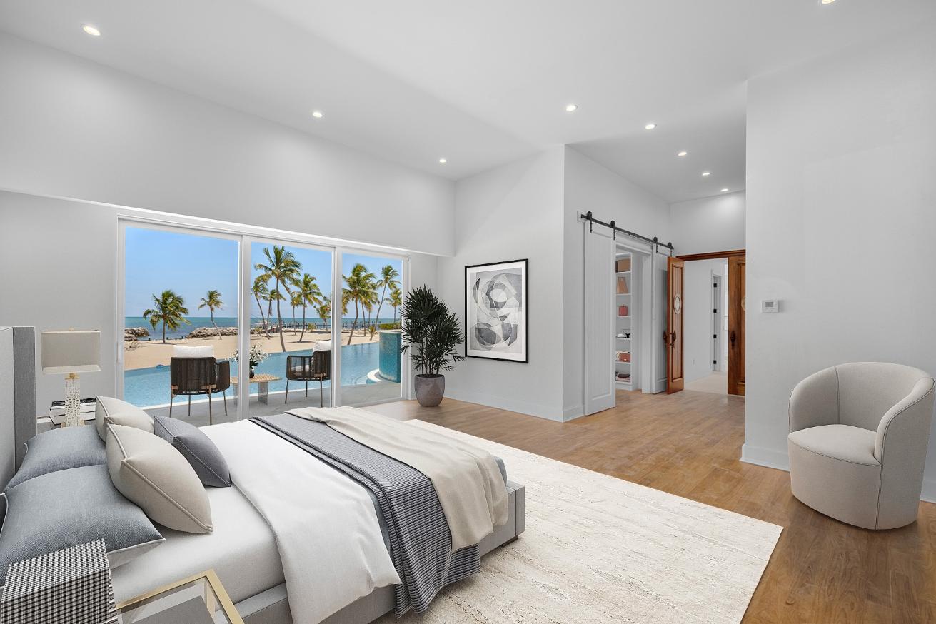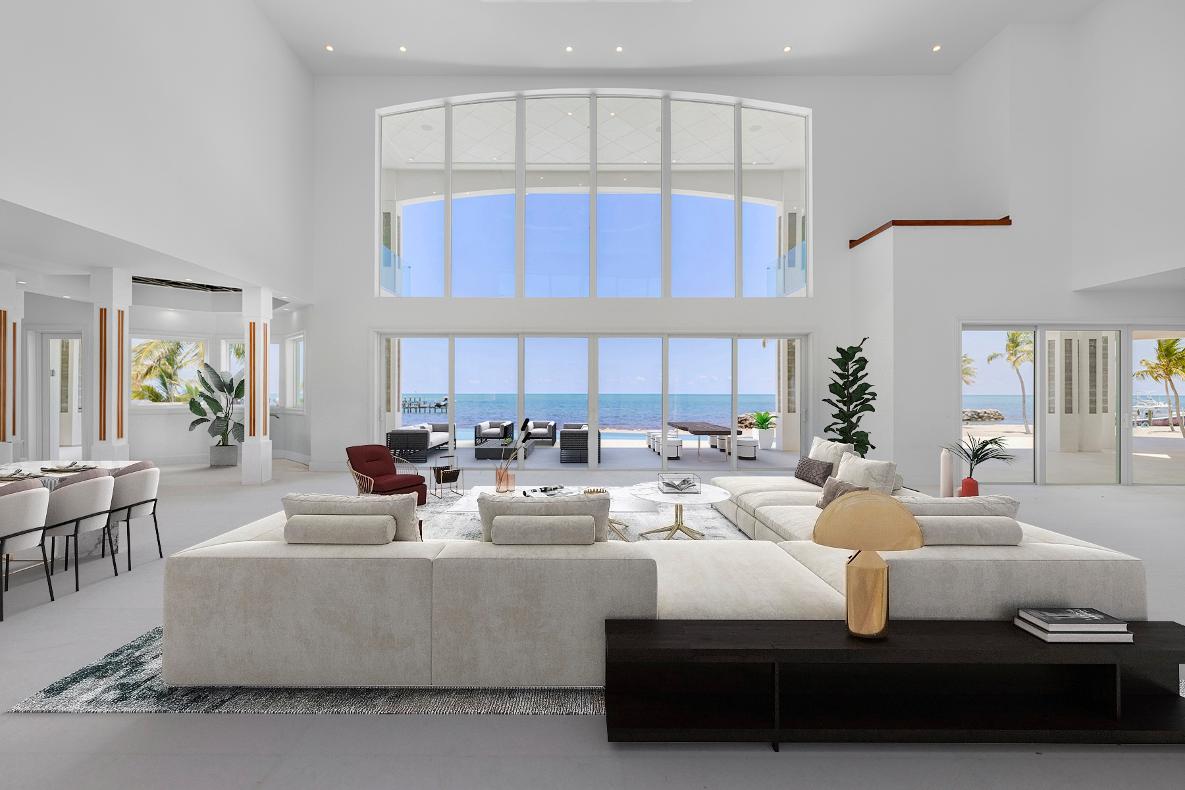 The epitome of luxury in this exclusive oceanfront estate in Islamorada, located in a one of the world's premier destination for fishing and diving. Spanning over 7 acres with 450 feet of pristine ocean frontage, the property includes a 200-foot-long deep water boat basin for protected dockage. The main house features 8,200 square feet of air-conditioned space, five spacious bedrooms, six full bathrooms, and two half bathrooms, all with elegant finishes like marble and teak flooring. An oversized garage offers ample space for cars and recreational toys.