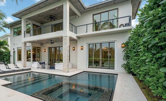 Miami Modern meets Art Deco in this new construction waterfront home. Inspired by contemporary design, this home incorporates Italian marble ooring, veined quartzite countertops, and ornate light xtures to create modern elegance with a touch of tropical nature.