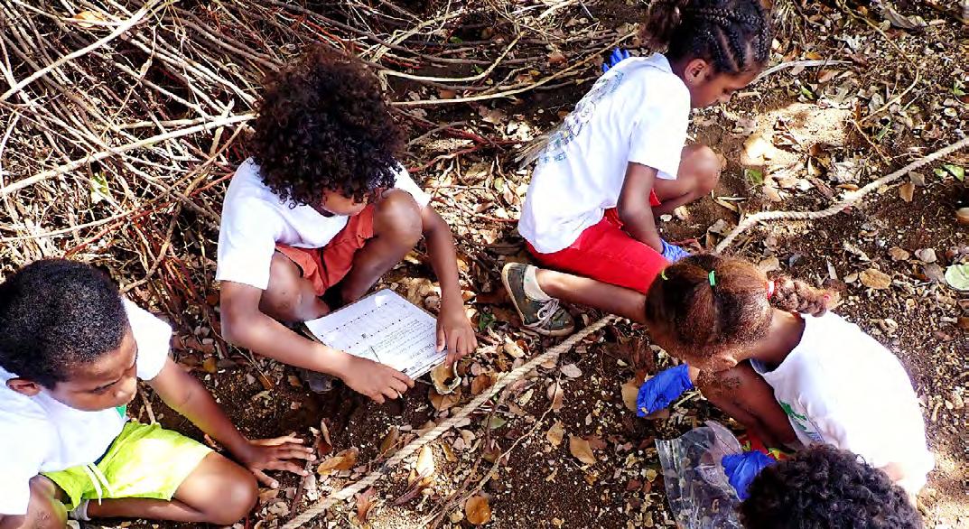 Le CIE.NC développe des activités éducatives et culturelles liées à l’amélioration des connaissances du milieu naturel calédonien. Ses membres s’emploient à sensibiliser et informer pour faire aimer l’environnement. | Des enfants attentifs et impliqués lors d’une animation nature.