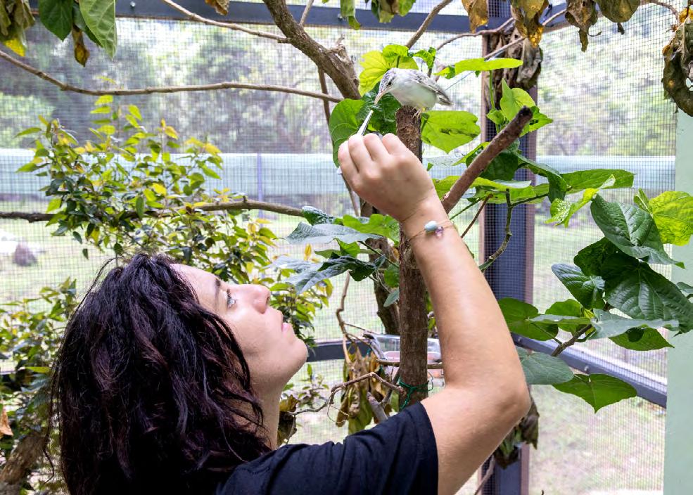 Vétérinaire et biologiste, auteure du Guide des oiseaux de Polynésie française, Caroline Blanvillain a consacré 25 ans de sa vie à la sauvegarde des oiseaux en Polynésie. À titre d’exemple, ses travaux sur le ‘ōmāma’o (monarque) de Tahiti ont permis de remonter les effectifs de 21 individus connus en 1998 à 148 en 2023.