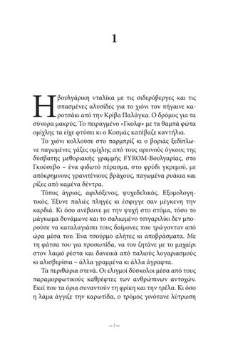 βουλγάρικη νταλίκα με τις σιδερόβεργες και τις σπασμένες αλυσίδες για το χιόνι τον πήγαινε καροτσάκι από την Κρίβα Παλάγκα. Ο δρόμος για τα σύνορα μακρύς. Το πειραγμένο «Γκολφ» με τα θαμπά φώτα ομίχλης τα είχε φτύσει κι ο Κοσμάς κατέβαζε καντήλια. Το χιόνι κολλούσε στο παρμπρίζ κι ο βοριάς ξεδίπλωνε παγωμένες γάζες ομίχλης από τους ορεινούς όγκους της δύσβατης μεθοριακής γραμμής FYROM-Βουλγαρίας, στο Γκούσεβο – ένα φιδωτό πέρασμα, στο φρύδι γκρεμού, με απόκρημνους γρανιτένιους βράχους, παγωμένα ρυάκια και ρίζες από καμένα δέντρα. Τόπος άγριος, αφιλόξενος, ψυχεδελικός. Εξομολογητικός. Έξυνε παλιές πληγές κι έσφιγγε σαν μέγκενη την καρδιά. Κι όσο ανέβαινε με την ψυχή στο στόμα, τόσο το μάγκωμα δυνάμωνε και το σαλιωμένο τσιγαριλίκι δεν μπορούσε να καταλαγιάσει τους δαίμονες που τρώγονταν από ώρα μέσα του. Ένα τσούρμο αλήτες κι αποβράσματα. Με τη φάτσα του για προσωπίδα, να του ζητάνε με το μαχαίρι στον λαιμό ρέστα και δανεικά από παλιούς λογαριασμούς κι αλισβερίσια – άλλα γραμμένα κι άλλα άγραφτα. Τα περιθώρια στενά. Οι ελιγμοί δύσκολοι μέσα από τους παραμορφωτικούς καθρέφτες των ανθρώπινων αντοχών. Εκεί που τα όρια συναντούν τη φρίκη και την τρέλα. Κι όσο η λάμα άγγιζε την καρωτίδα, ο τρόμος γινότανε λύτρωση