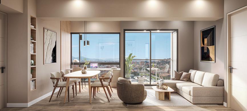 Render ilustrativo. Colina Living. Arquitectura y Concreto. 2025. Estas imágenes contienen mobiliario, decoración y elementos de apreciación estética que son interpretación del artífice y que no están incluidos dentro de la oferta comercial y por ende no comprometen a la sociedad promotora. Las especificaciones elementos que tienen el carácter de comunes como los muros, ductos, buitrones, elementos estructurales y de fachada. El diseño definitivo corresponderá a los planos del proyecto aprobados por la autoridad competente. Los amenities se entregarán licencia urbanística o de la entidad encargada. El proyecto se desarrollará por etapas, definidas por la sociedad promotora/constructora. No existe compromiso, promesa, garantía, del desarrollo efectivo de las etapas futuras, el cual depende variación. La sociedad promotora/constructora se reserva el desarrollo de las etapas futuras, y solamente como una idea preliminar o estimada, sujeta a la posibilidad de variación