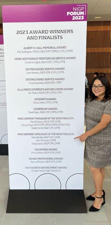 In October 2022, Silvia became a Certified Professional Public Buyer (CPPB) followed by NIGP Procurement Professional in February 2023. Silvia’s serviceminded attitude and commitment to continued learning and professional development have contributed to her success and endeavors.