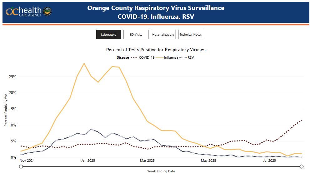 Orange County respiratory virus data can be viewed at Respiratory Virus Data | Orange County California - Health Care Agency. We continue to follow COVID-19 vaccine guidance from CDPH COVID-19 Vaccines