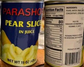 Parashore Pear Slices in Juice is being recalled because of potential contamination with elevated levels of lead and cadmium. Lead and cadmium are toxic if ingested by young children and can cause adverse health issues.