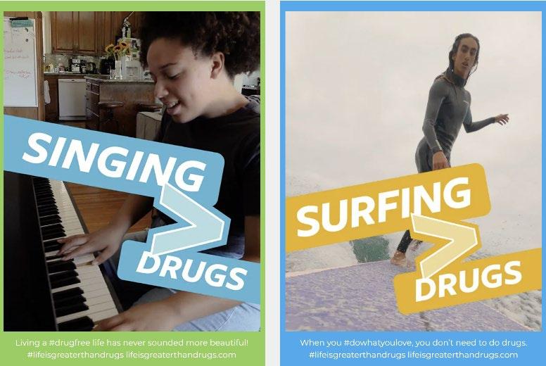 • The “Life is Greater Than Drugs” campaign which targeted OC youth to showcase life with music, sports, artistic and creative dreams versus a life misusing drugs like opioids and fentanyl, causing devastating loss of those dreams. Visit Life Is Greater Than Drugs