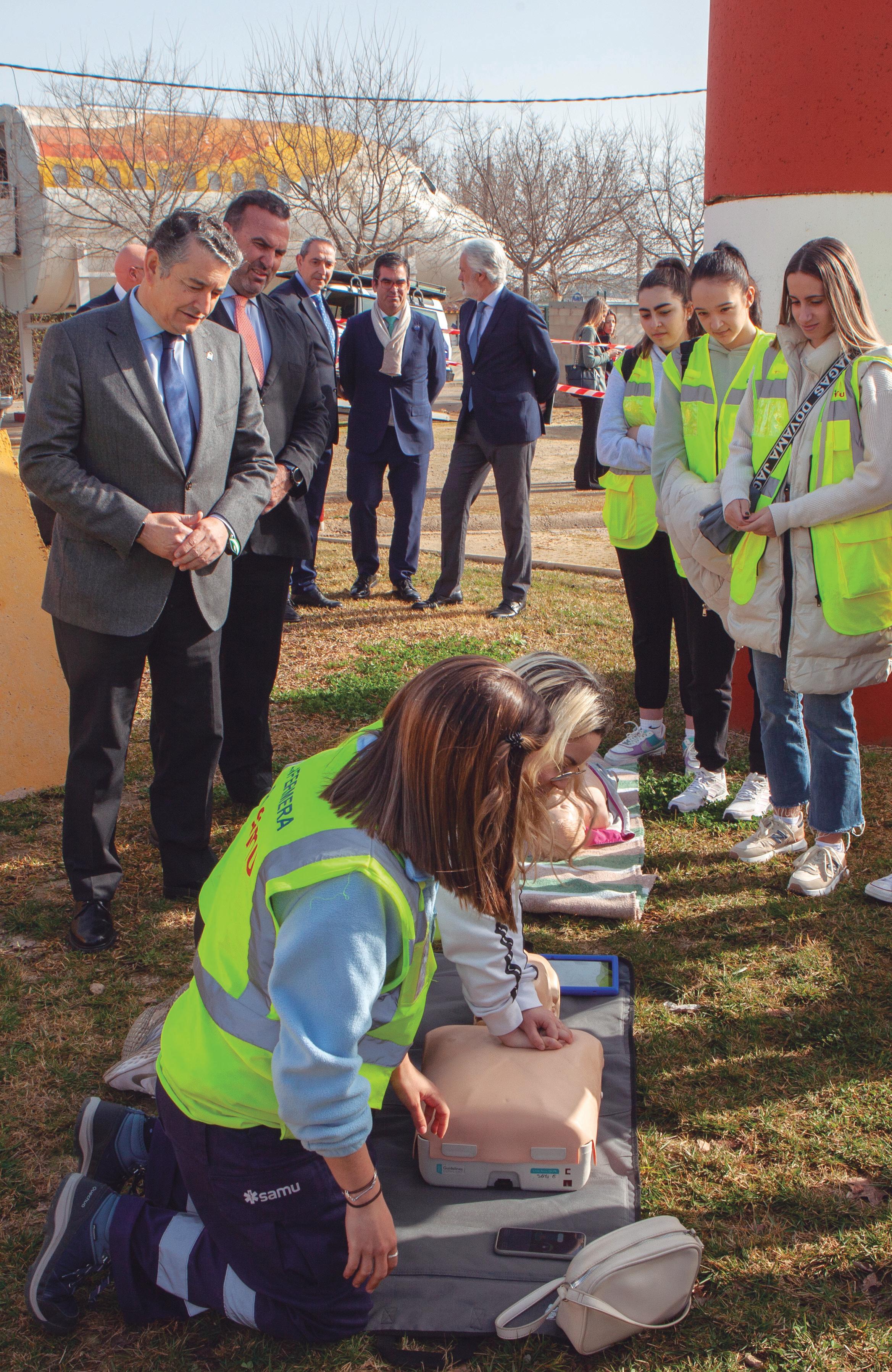 Instructors and students from the school participate in the tenth edition of the Cardiomarathon 061 to train young people from Seville in resuscitation techniques.