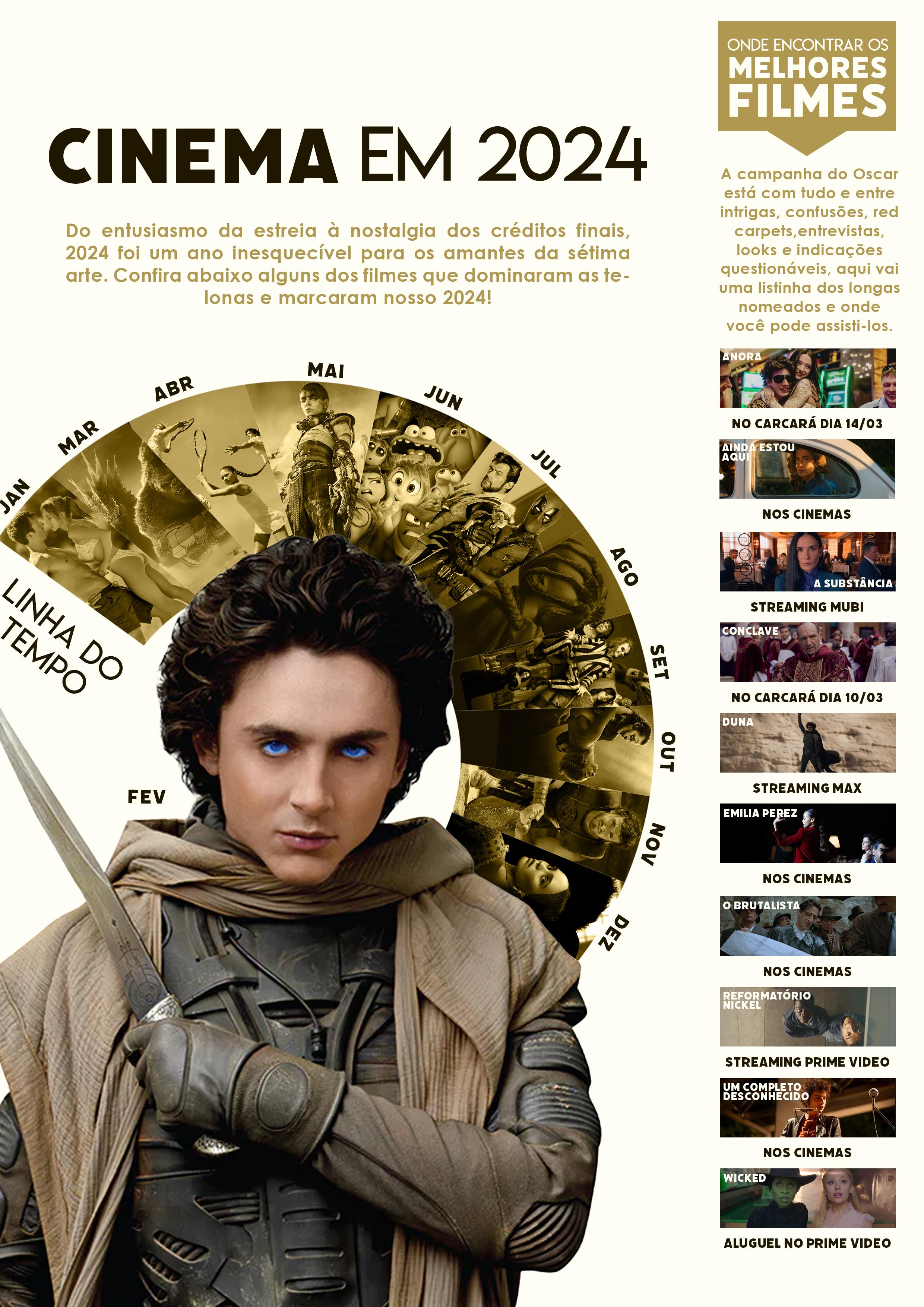 cineducação crítica - anora cinebastidores por dentro do cinecom horror corporal “a substância” conquista espaço e representa o terror no oscar onde assistir / linha do tempo redação analisa - incident matéria de capa - ainda estou aqui perfil - fernanda torres crítica - emilia pérez e o oscar (não) vai para... só os vivos têm o privilégio de envelhecer horóscopo do marketing favoritos do audiovisual e playlist da rádio conclave: a hipocrisia de uma instituição que prega aceitação trilha sonora para um golpe de estado crítica - flow favoritos da redação