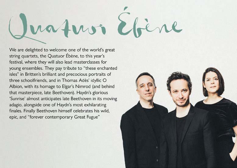 Photo credits: Page 1&40 „Scilly dreaming“ © Kieran Stiles | Page 2&3 „4“ © 4-thefilm.com | Page 4&5 Ebène Quartet © Julien Mignot | Page 6 bicycles in Oxford © AdobeStock | Page 7 Circus background © AdobeStock | Animato Quartet © Minou op den Velde | Page 8&9 Paddington Trio © paddingtontrio.com | Page 10 „Scilly dreaming“ © Kieran Stiles | Page 11 The Store Hotel © thestoreoxford.com | Page 12&13 Reto Bieri © Marco Borggreve | Page 14&15 Mishka Rushdie Momen © Benjamin Ealovega | Page 16&17 Hugo Ticciati © Kauppo Kikkas | Page 18&19 Brian O’Kane © Sussie Ahlburg | Page 20&21 Elizabeth Leonskaja © Marco Borggeve | Page 22&23 Natalie Clein © Michael Staab | Treasure&Keys © AdobeStock | Page 24&25 Emma Bonnici © John FG Stead | Page 26&27 Priya Mitchell © Stefan Bremer | Page 29 Bodleian Weston Library © AdobeStock | Page 30&31 Jordi Carrasco Hjelm © Pablo Rodriguez | Page 33 © thevaultsandgarden.com | Page 34&35 Guy Johnston © Kauppo Kikkas Page 38&39 „little haven“ © Kieran Stiles
