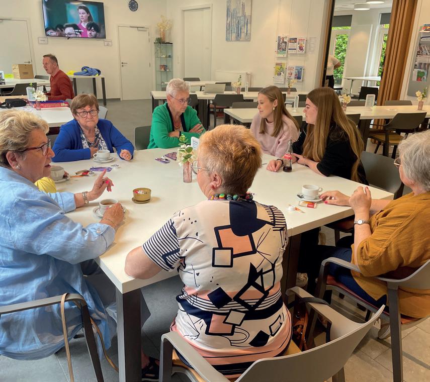 In juni kwam een klas uit het derde jaar Maatschappij en Welzijn op bezoek in het buurtcentrum. In het vak ‘ontwikkeling en pedagogisch handelen’ leren ze op school over de verschillende levensfases. In het derde trimester verdiepten ze zich onder andere in de ontwikkeling binnen de volwassenheid. Dit leent er zich uitstekend toe om ook eens buiten de schoolmuren te treden en de werking van het buurtcentrum te leren kennen alsook contacten te leggen met verschillende volwassenen. Voor de ene leerling is die drempel al wat hoger dan voor de andere. Maar ze hadden het geluk om heel wat sympathieke mensen te mogen ontmoeten waardoor een gesprek al snel op gang kwam. Niets dan positieve reacties nadien!
