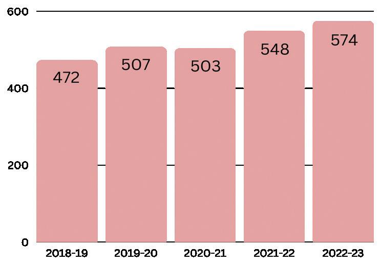 Country Day’s enrollment continues its upward trend, hitting a new Pre-K-12 record for the 2022-23 school year. The school welcomed 110 new students, pushing the total stu dent population at 574, 26 more than last year’s record of 548.