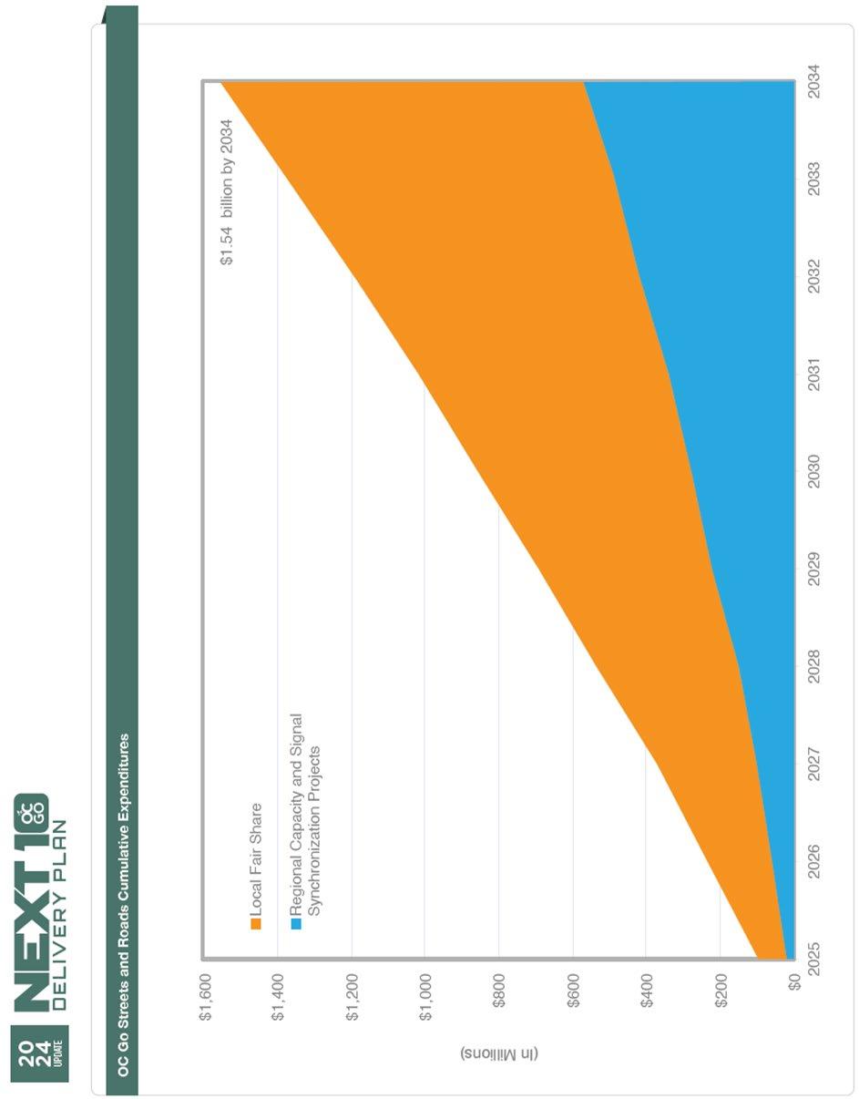 On November 12, 2024, the Orange County Transportation Authority (OCTA) Board of Directors (Board) adopted the 2024 Updated Next 10 Delivery Plan (Next 10 Plan). The 2024 update shifts the timeframe of the Next 10 Plan from fiscal year (FY) 2022-23 through FY 2031-32 to FY 2024-25 through FY 2033-34. As such, commitments have been reviewed and adjusted accordingly. The draft 2024 Updated Next 10 Plan also incorporates refined project information including cost estimates, schedules, and available external funding.