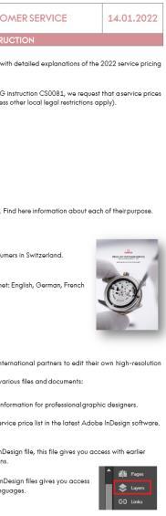 內容:這項服務能夠向客戶提供關於腕錶出廠情況的資訊。 地點:僅於線上MyΩ帳戶使用(此服務不適用於美國)。 流程:提供序號和2張圖片(錶頭的正面和背面),適用於10年以上的腕錶。 價格:120瑞士法郎(不含稅),如無法提供檔案摘錄,已進行相關資料搜集工作,將不予退款。 需時:檔案摘錄的數位版本將於15天內提供給客戶,直接傳送至客戶的MyΩ 帳戶。 檔案摘錄