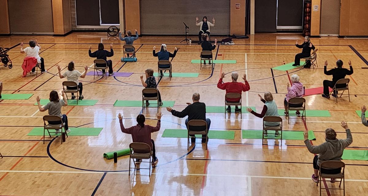 Join us for a low-impact class designed to improve balance, build endurance, and strengthen muscles. Participants have the option to sit or stand during all portions of the class. Hand-held weights, and stretch bands are provided.