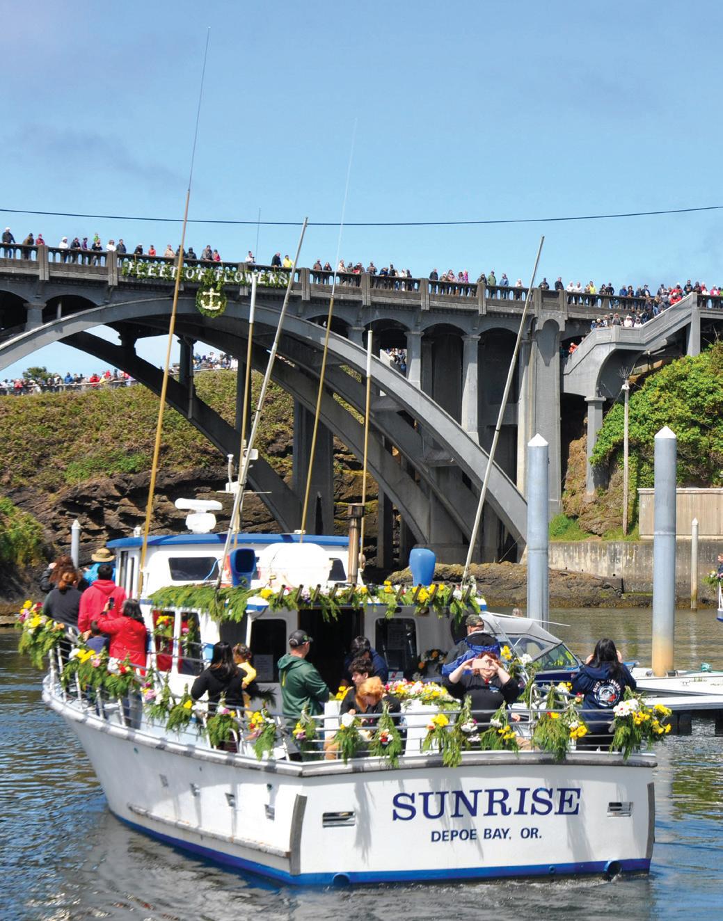 Their courage and sacrifice became the stuff of local legend, and a decade later, after the close of World War II, the Fleet of Flowers event was born. Over time, the event was broadened to include remembrance of all seafarers — fishermen, navy, coast guardsmen — who have lost their lives at sea. It has grown to become a signature event for the city of Depoe Bay.