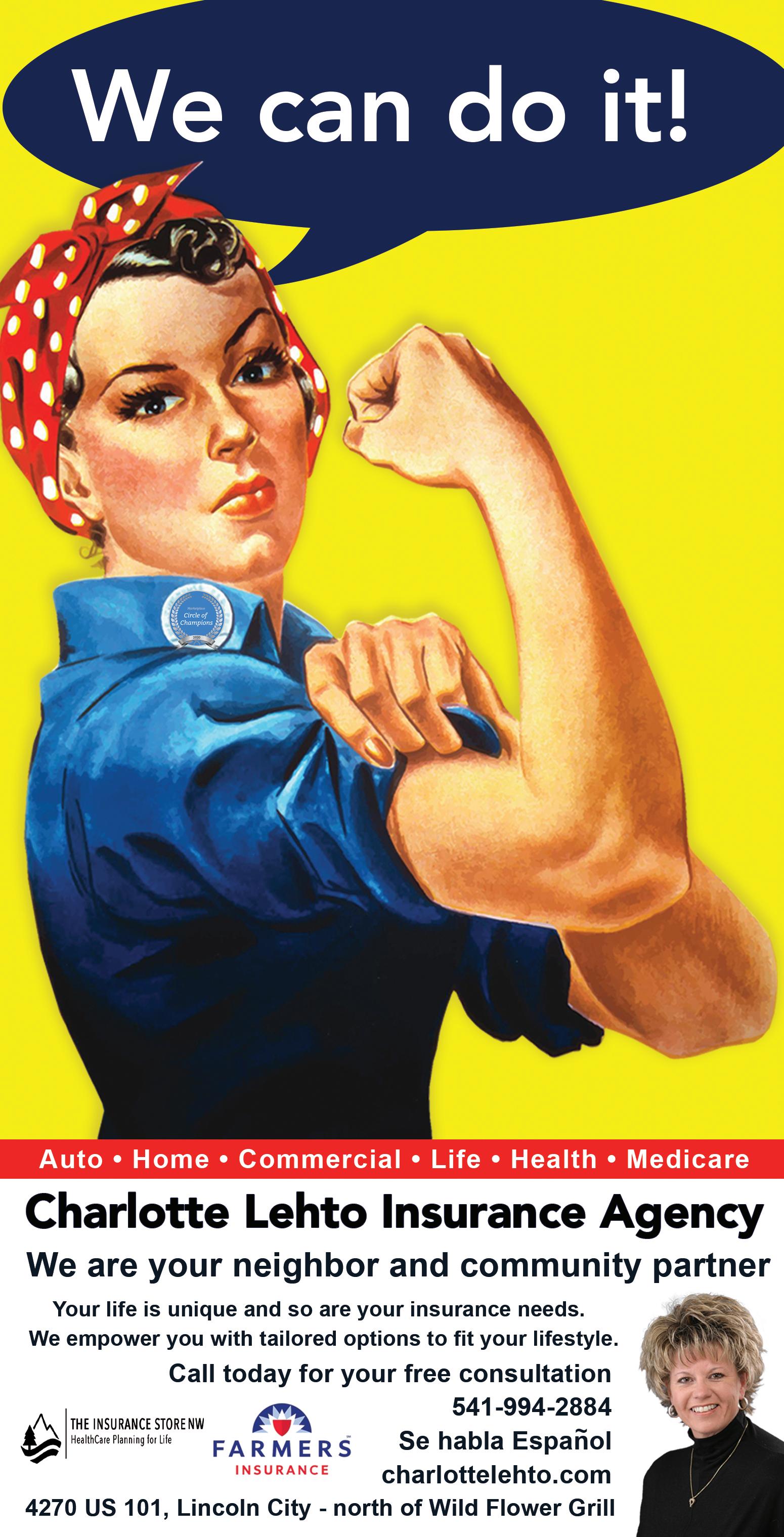 NO CONTRACTS • OPEN 7 DAYS A WEEK • WWW.POINTBREAK.COM WHEN WE REACH THAT POINT IN LIFE WHERE WE BREAK DOWN AND DECIDE TO TAKE BACK CONTROL OVER OUR PHYSICAL AND MENTAL HEALTH GREAT PARTNERSHIPS CREATE A BETTER COMMUNITY, GUIDING YOUR JOURNEY TO WELL BEING Shop ’til you drop! Oregon’s largest women’s boutique, featuring fashion, footwear and accessories from more than 150 designers. Sizes XS-3X. Lincoln City Outlets • 541-614-4046 • @flourishboutiquenw 7:30 pm Thu, Fri, Sat through June 15 2 pm matinée Sun. June 2 Contains strong language 3536 SE Hwy. 101 Lincoln City • theatrewest.com • 541-994-5663 Don’t argue over date night. See a live show at Theatre West.