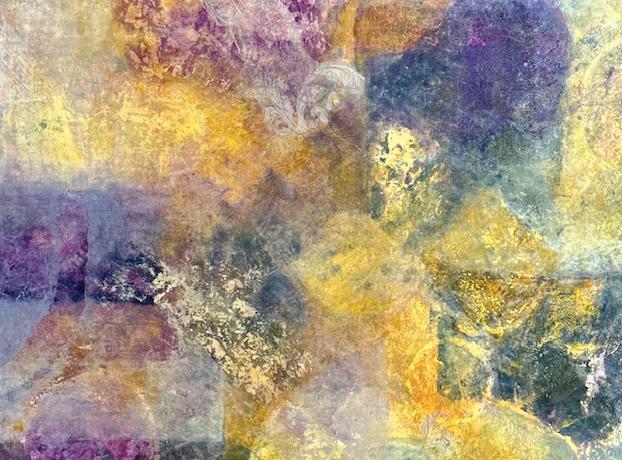 Ruth Hugeback picked up a paintbrush in earnest about 15 years ago, after a 40-year career as a laboratory scientist. She “finds different processes therapeutic, fascinating, exciting and frustrating,” and enjoys experimenting in painting in watercolor, oil and acrylic as well as dyeing, book binding, acrylic and gel printing. She frequently hosts classes at the Artists’ Studio Association.