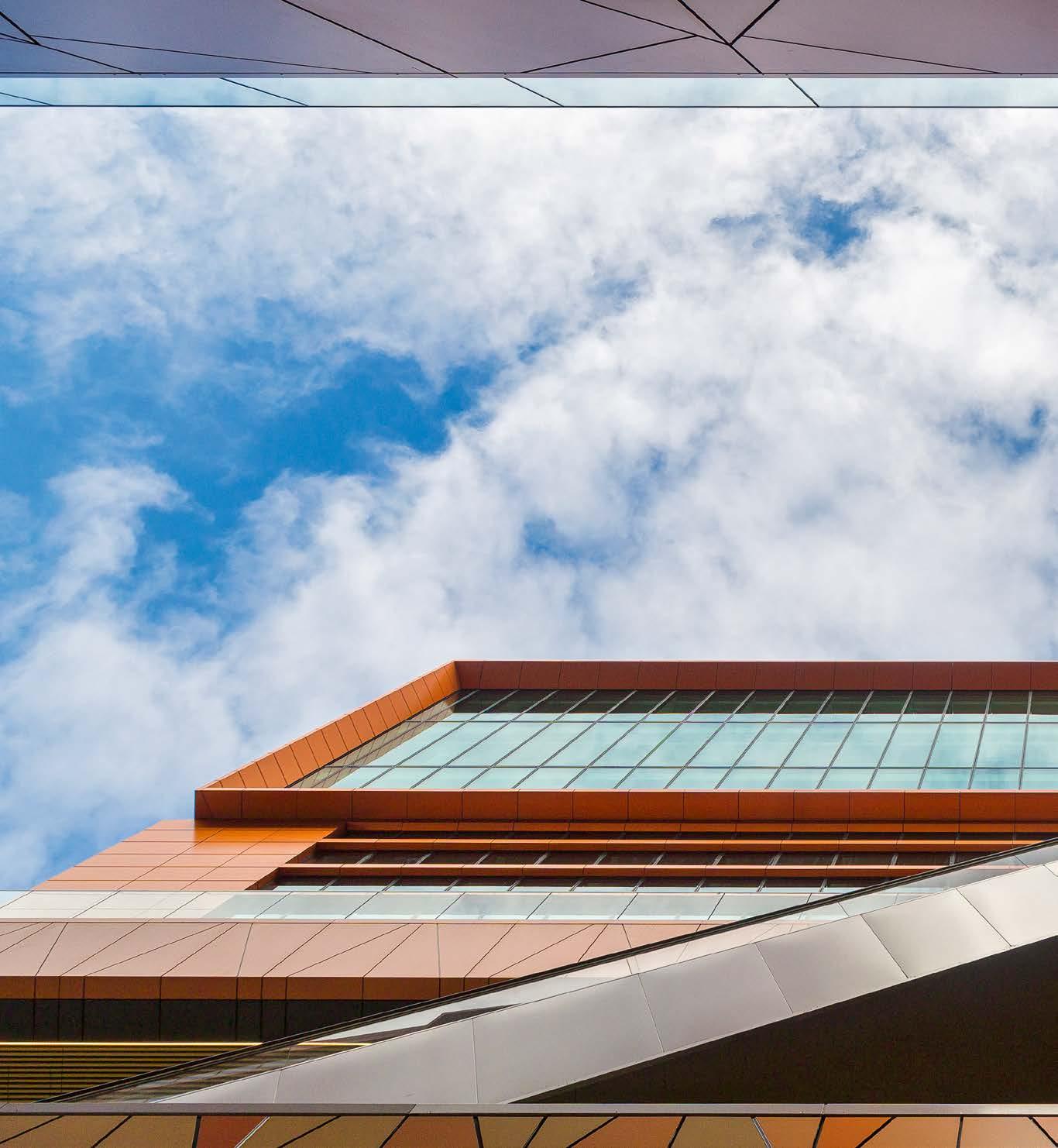 Az épület külső megjelenését a környezetével való párbeszéd és városképi szerepének, térjeli motívumának alázatos figyelembevétele határozza meg. A tömegek úgy formáltak, hogy az együttes harmonizáljon a környező épületek léptékével és reagáljon a csatlakozó utcák, terek, sugárutak erővonalaira. A pódium lépcsőzetesen lett kialakítva és tömegét több visszahúzás tagolja erővonalaival, míg a torony nútokkal lett karcsúsítva. A torony tömegét egy ferde sík zárja le, mely gesztus reflektál a várost körülölelő hegyek sziluettjére.