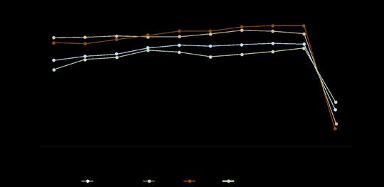 Gráfico 2. Tasa de ocupación de la industria hotelera a nivel mundial de 2008 a 2019 por región.