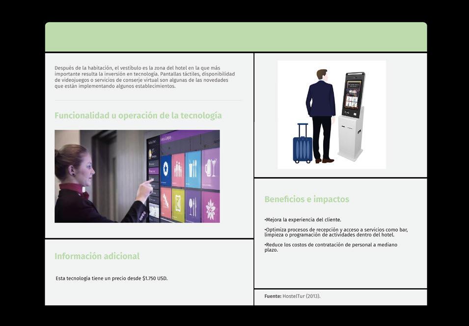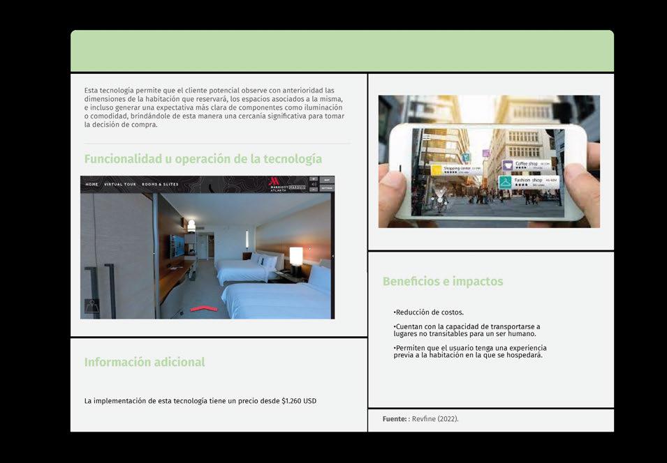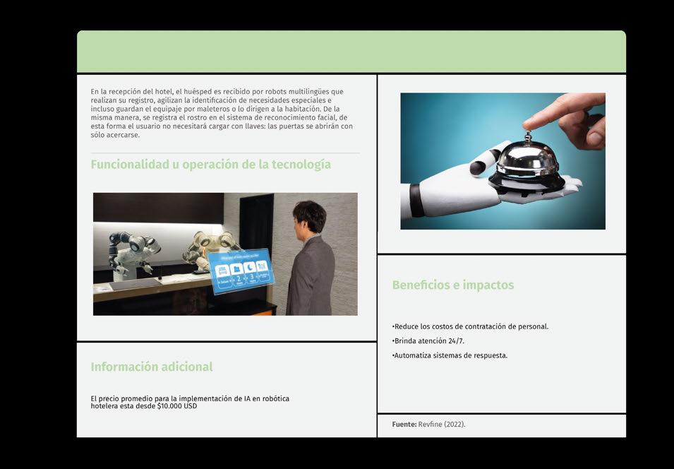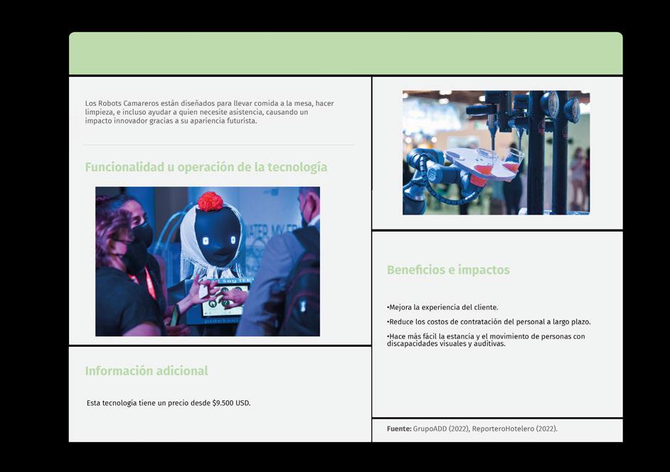 Finalmente, algunas de las tecnologías más relevantes son: los robots camareros, los chatbots, la realidad virtual no inmersiva y los pagos sin contacto.
