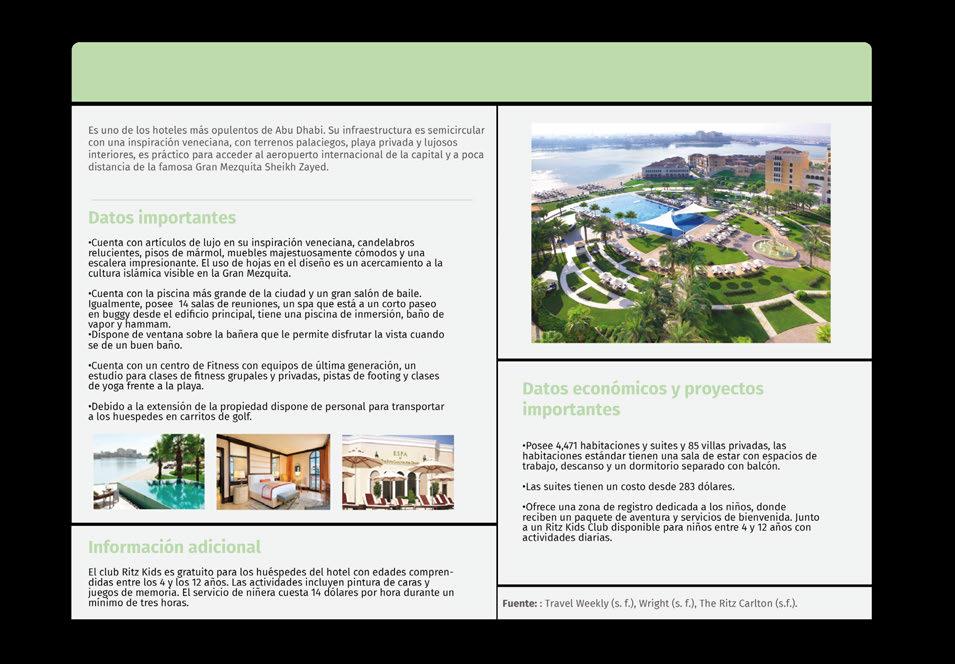 The Ritz Carlton (S.f.). ABU DHABI, GRAND CANAL United Arab Emirates. https://www.conferencehotelgroup.com/img/hotels/ files/1389/The%20Ritz-Carlton%20Abu%20Dhabi,%20Grand%20 Canal%20Rack%20Brochure.pdf