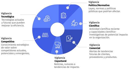 nológica, política, social, cultural), con el ánimo de identificar y anticipar oportunidades o riesgos, para mejorar la formulación y ejecución de las estrategias en las organizaciones (Sánchez y Palop, 2002). De ahí que la VT-IC permite alertar sobre cualquier innovación científica, tecnológica, asociativa, competitiva y técnica susceptible de crear oportunidades o mitigar amenazas.