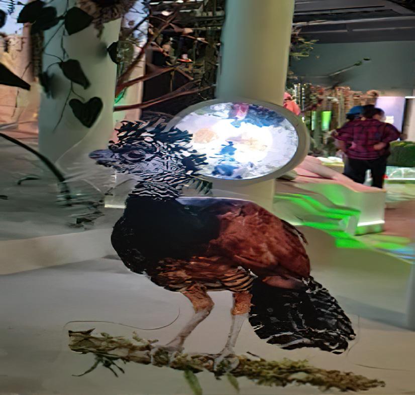 • Representan con imágenes en acrílico los especímenes de los cuales no cuentan con ejemplares en taxidermia y las iluminan para representar su presencia. Esta idea es opción útil para las exposiciones itinerantes que maneja INCIVA y así evitar sacar ejemplares reales de las colecciones de exposición, o también para incluir elementos con los que no se cuenta dentro de las colecciones.