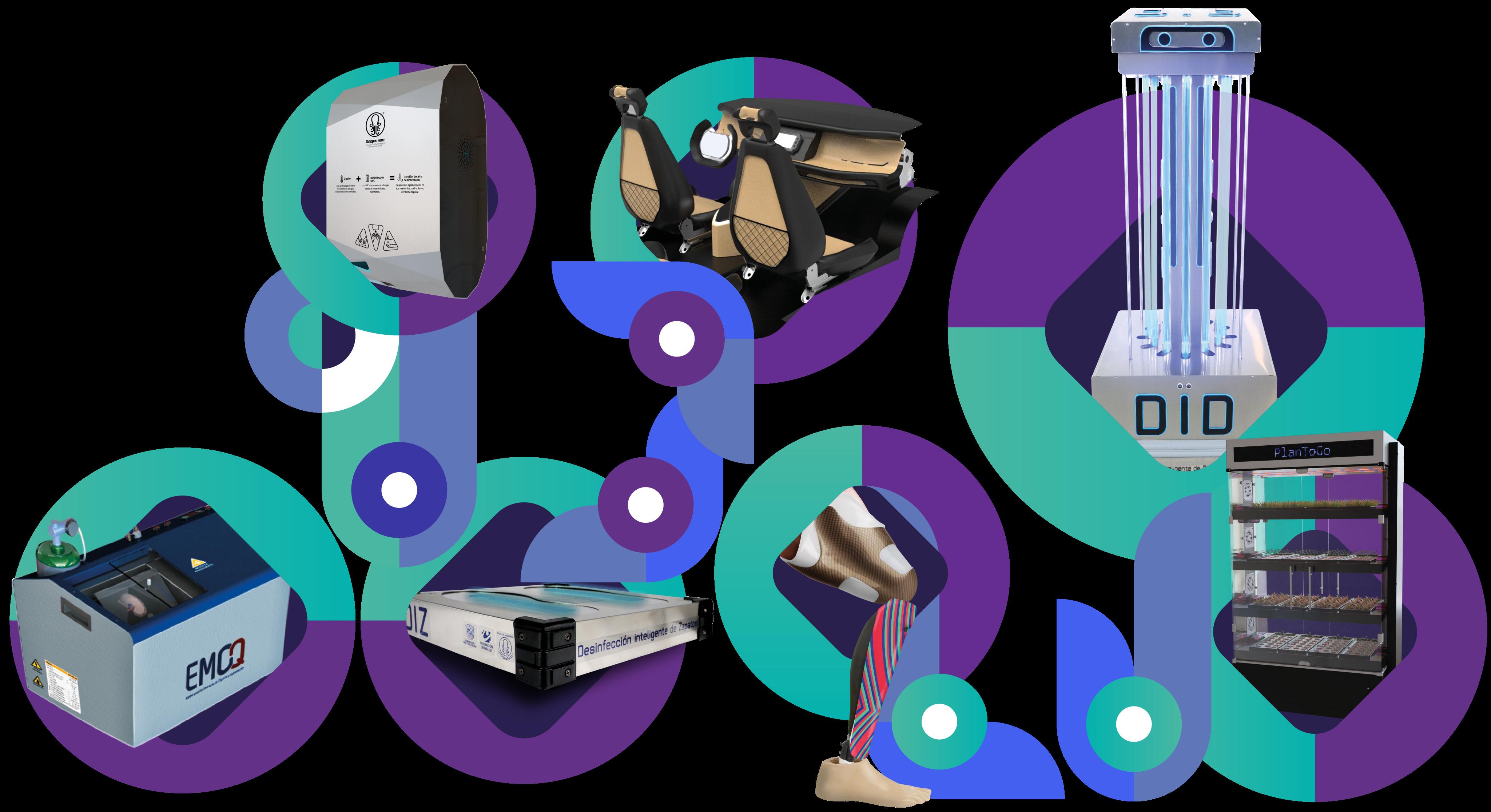 The first flight simulator in Colombia, organ transplant equipment, lower limb prostheses, agricultural bioreactors and the joint development of the first Colombian electric vehicle.