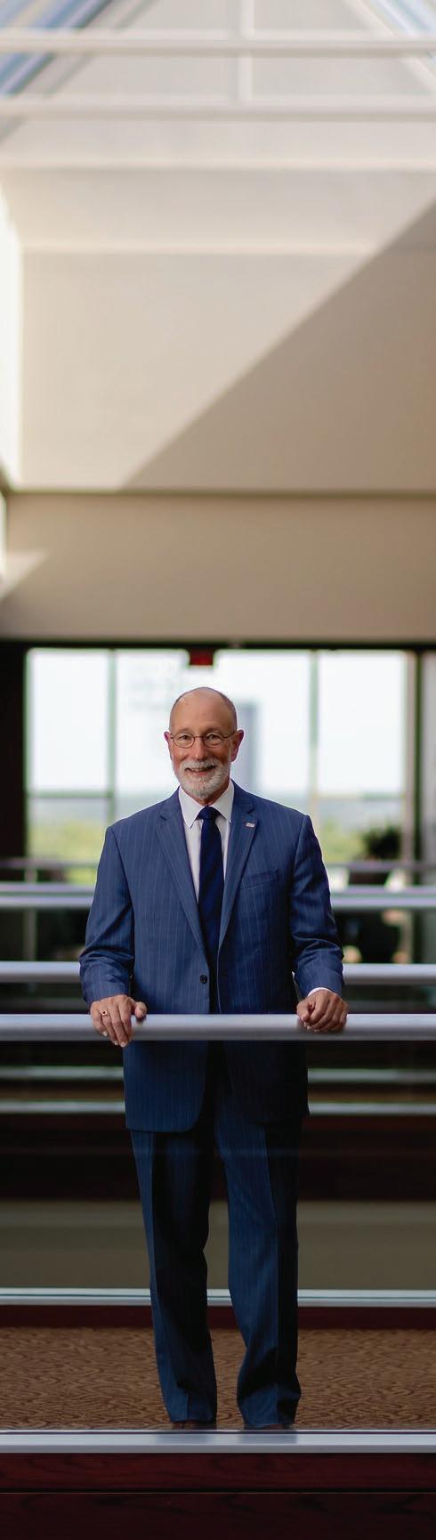The majority of his early-morning rides around Lake Stan ley Draper came during Evans’ previous stop in the Okla homa City metro, when he was business dean at the Uni versity of Oklahoma for six years. That stint ended in 2013, when he assumed leadership at Lamar. Rewind to an August morning in 2021. Re cently installed as president at OCU, Ev ans returned to Lake Stanley Draper for a reunion ride on his favorite route. The president said he sees such rides as an opportunity to clear his head.