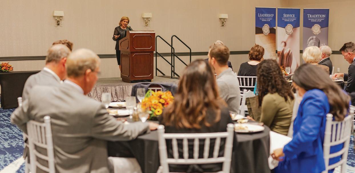 After a year hiatus, the OCU Law Alumni Luncheon resumed, corresponding with the Oklahoma Bar Associ ation's annual meeting. This year’s keynote speaker was Kay Van Wey ’83 (shown below).