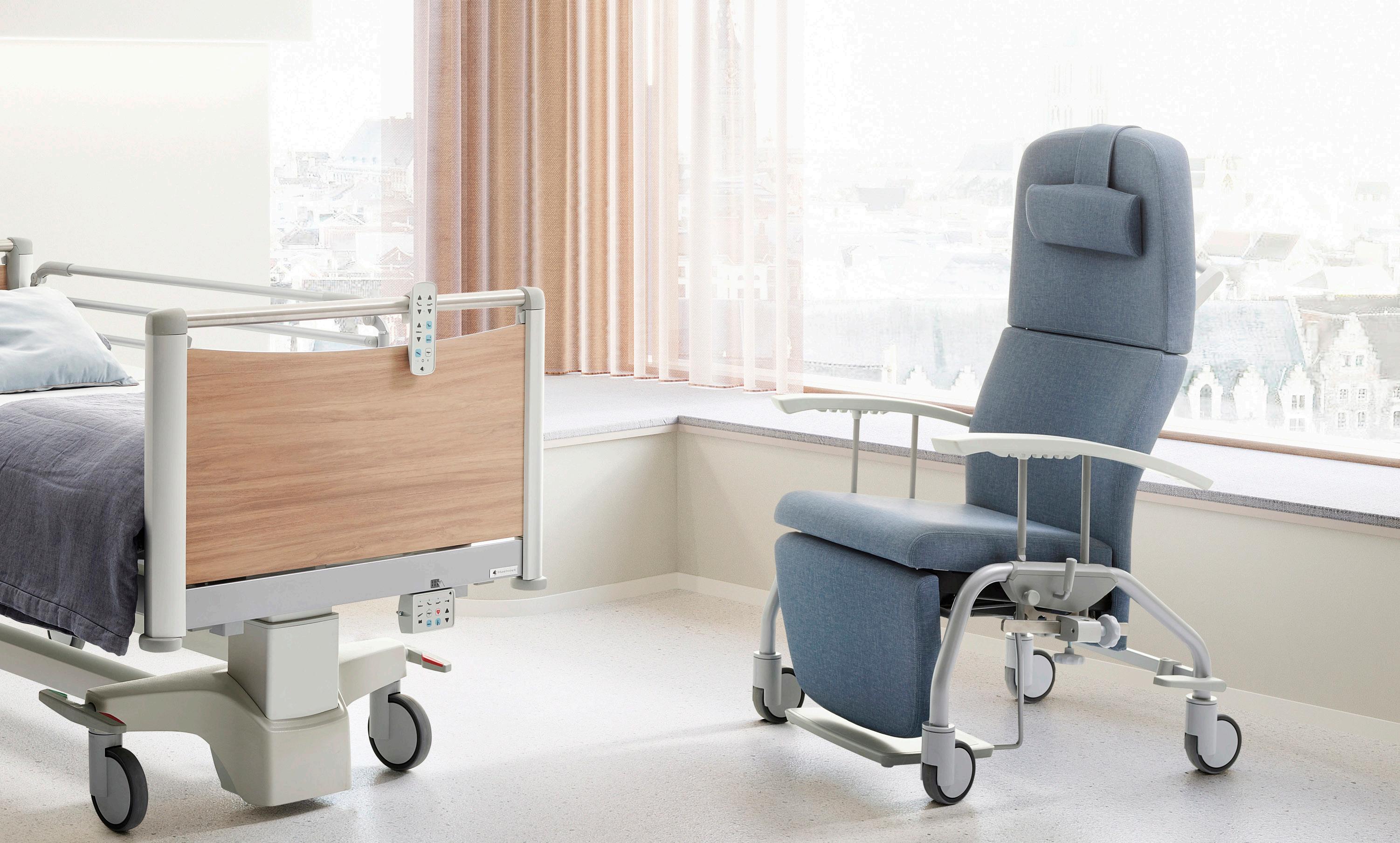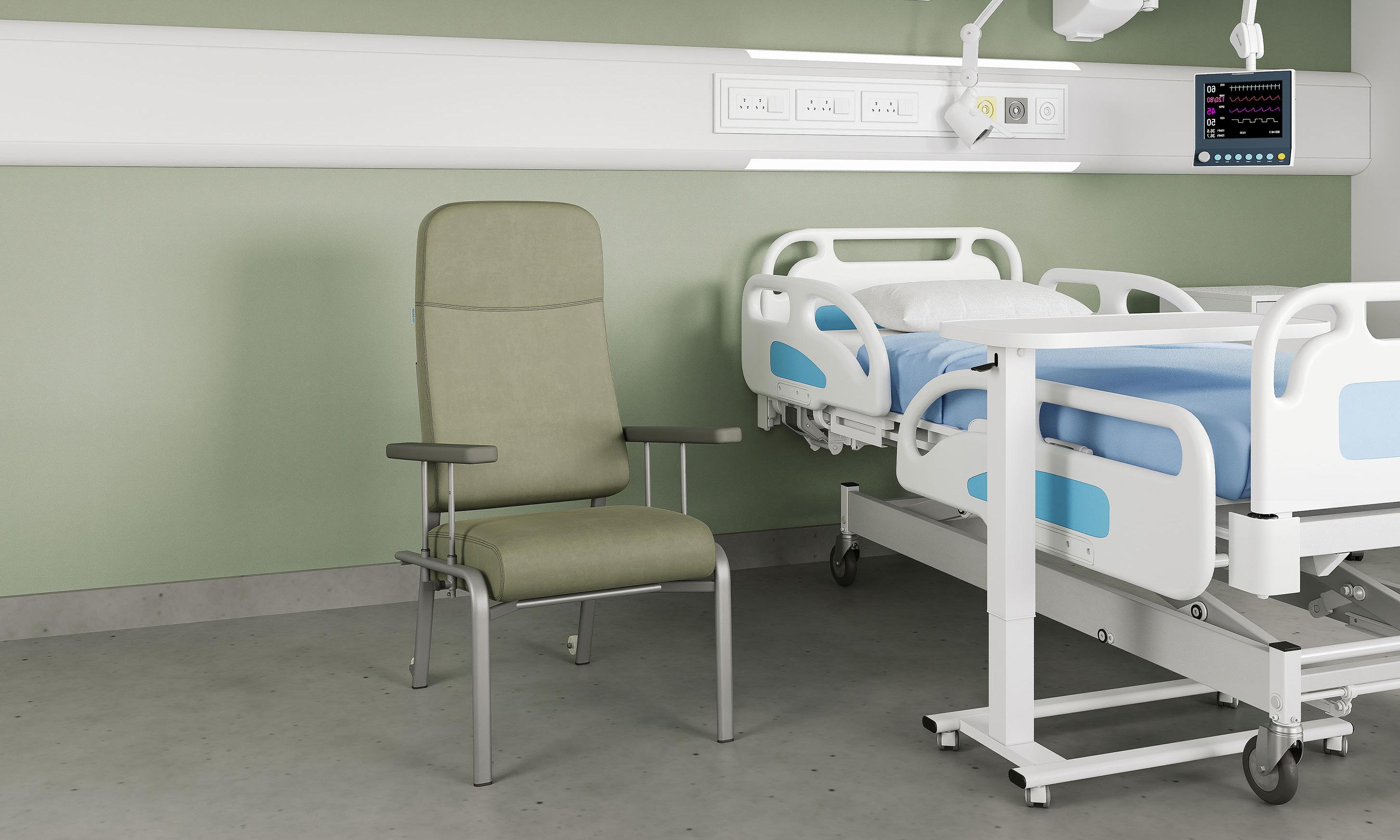 Designed for adaptability, support, and usability, it features housekeeping castors for easy movement and cleaning.