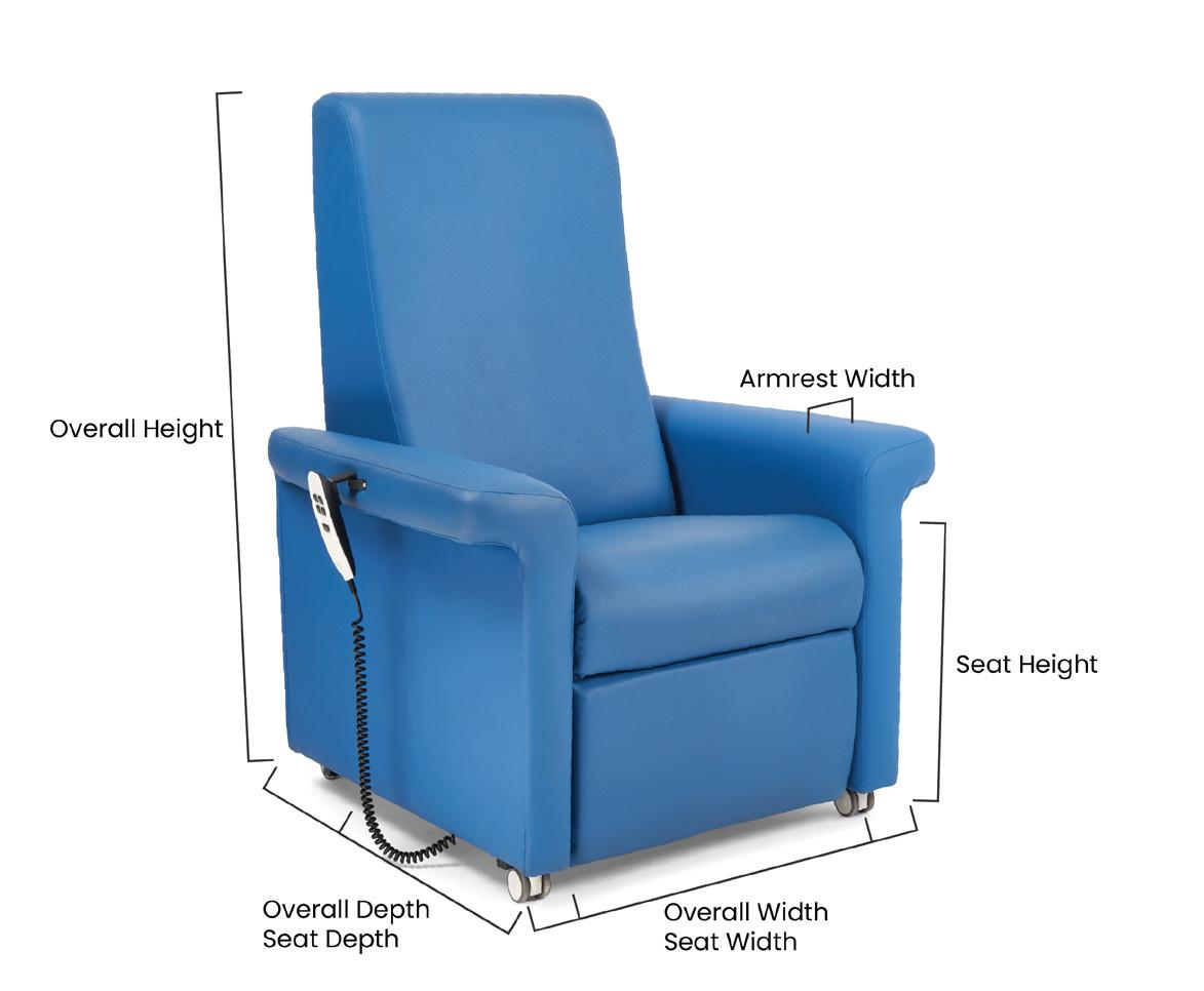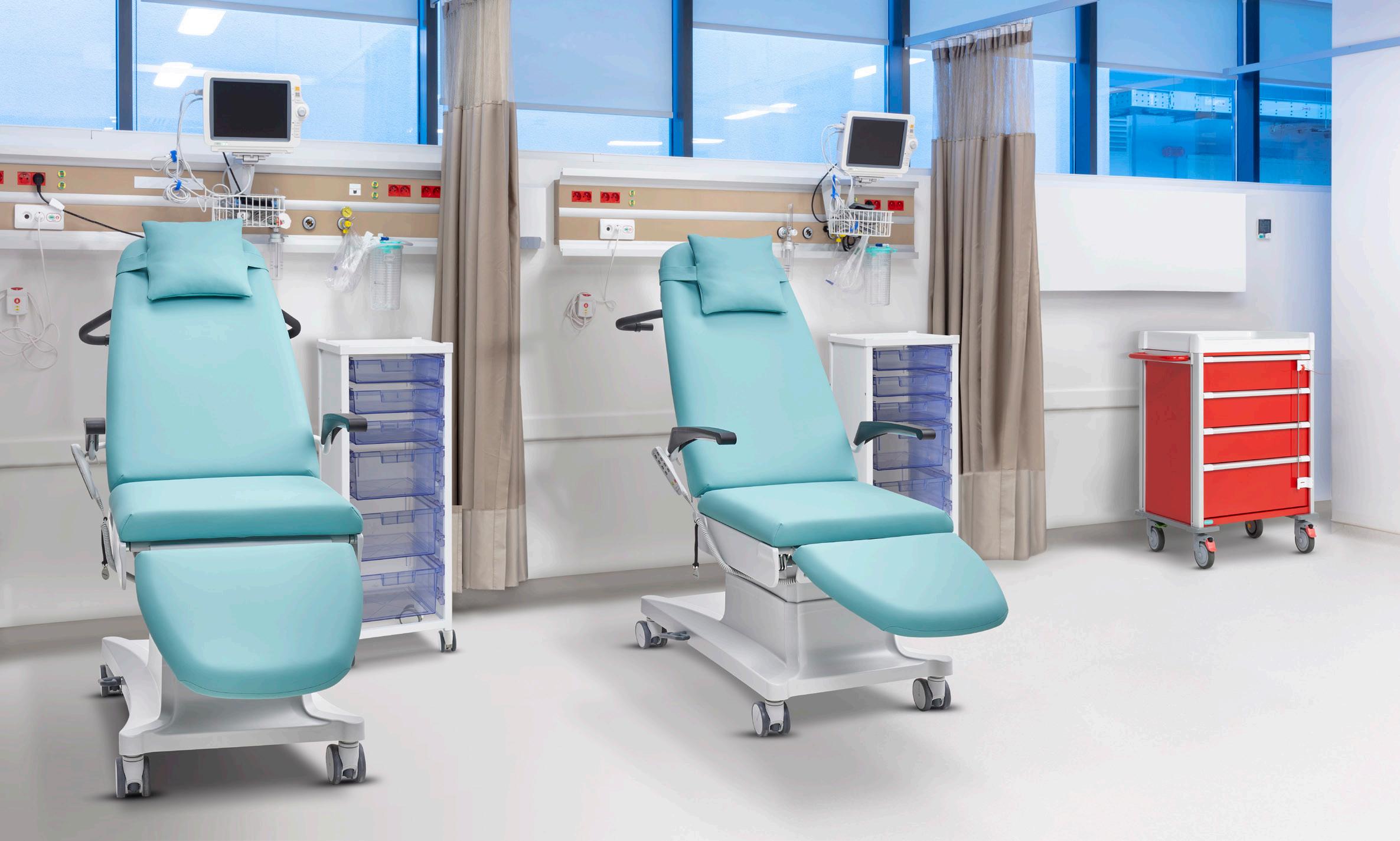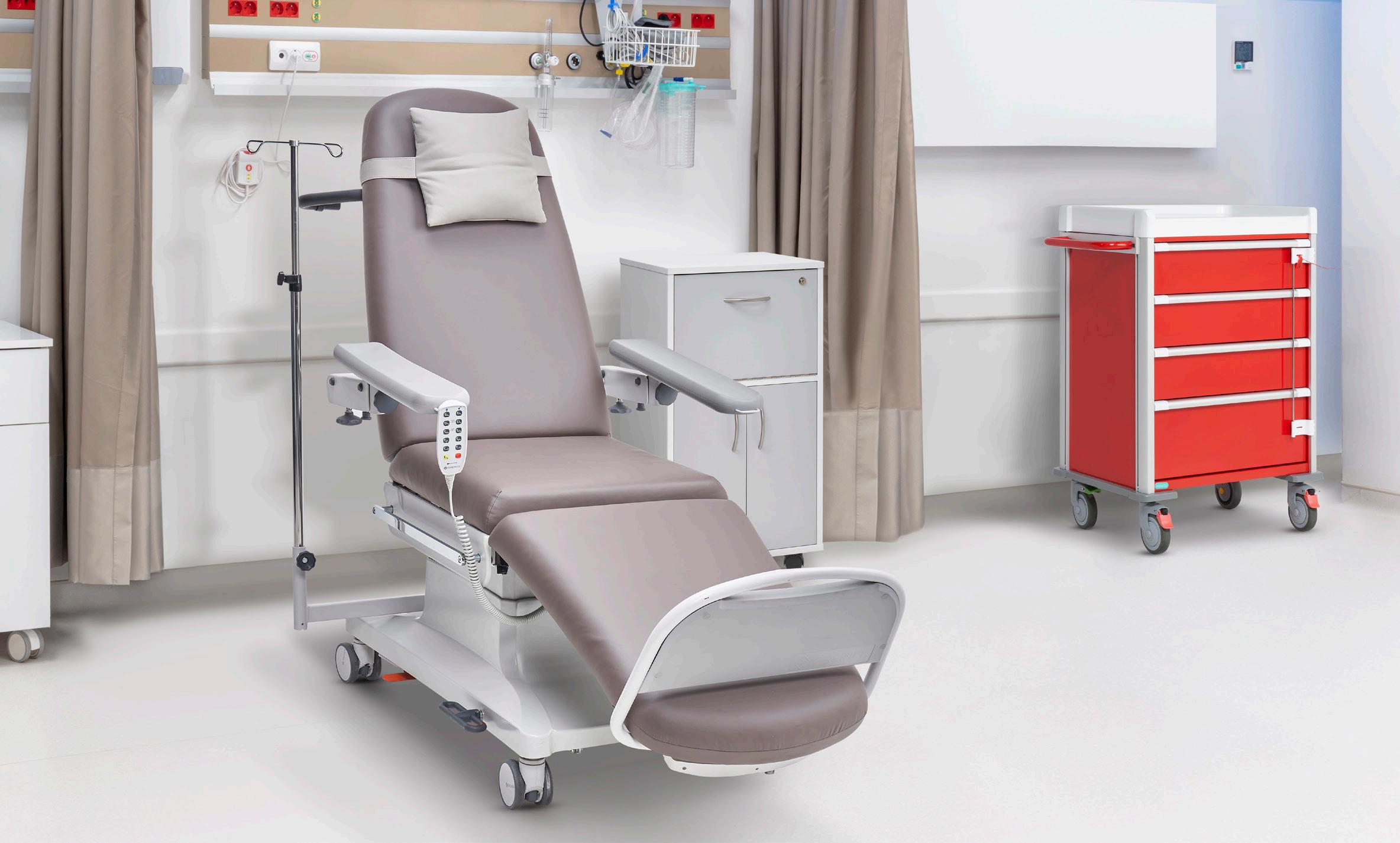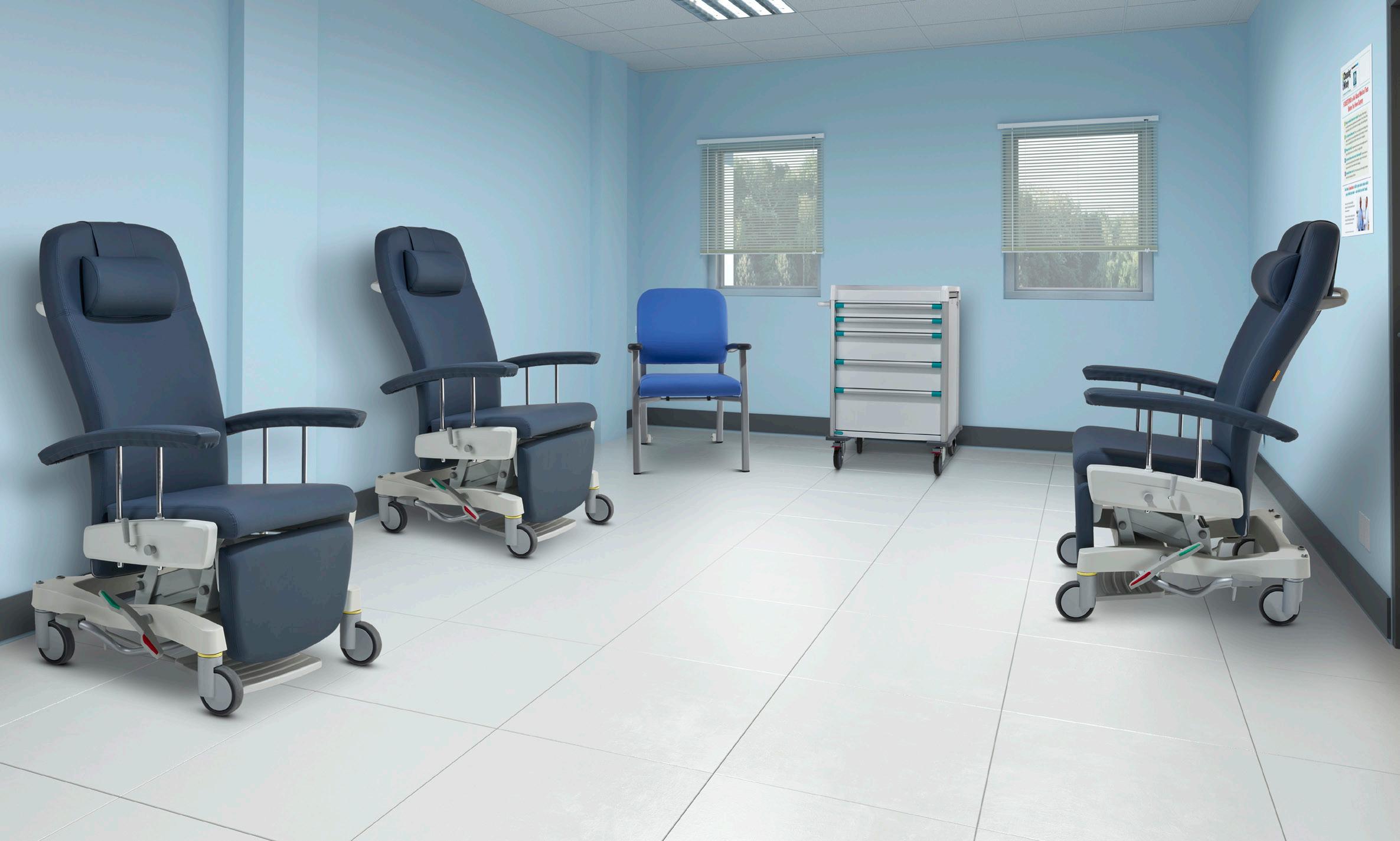All electric recliners, plinth couches, treatments chairs and blood sampling chairs.