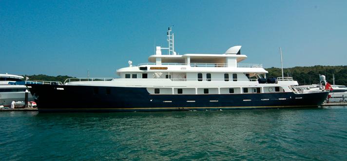 A storied charter yacht with a surprising history, Northern Sun is a handsome 51m luxury charter yacht, ideal for exploring Thailand and beyond. Accommodating 12 guests in six staterooms, she was originally delivered in 1976 as Hokko Maru (‘Northern Light’) and served as an ice-class research vessel in the North Japan Sea. A two-year refit in 2006 transformed her into a stunning superyacht, featuring warm interiors with narra and makore wood, and 19th-century oil paintings. A prized 100-year-old ship's clock adds to her charm. The main deck is dedicated to entertainment, with an alfresco dining area; a salon with a piano and games table; gym equipment; library, and an outdoor Jacuzzi. The forward seating area – added during the refit – is perfect for an aperitif, while her impressive storage includes three tenders, two Laser sailing dinghies, an electric surfboard, and a two-deck inflatable slide. After a decade of Southeast Asian adventures, Northern Sun became a popular charter yacht in Thailand and a star of the popular series Below Deck Down Under. She will be available for charters in the Maldives from 1 February 2025.