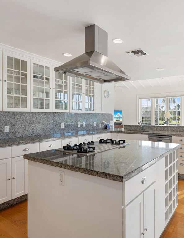The spacious living room features handsome French doors that frame breathaking views of the lush fairways. The chef’s kitchen is a culinary masterpiece with top-of-the-line appliances, custom cabinetry, and a large island.