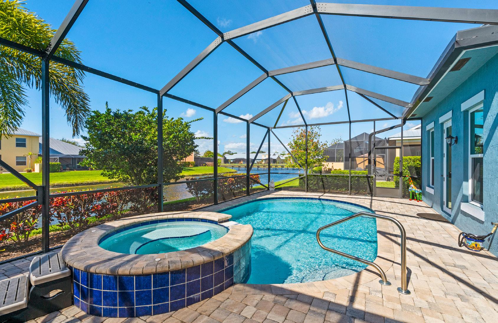 Located in the private, gated community of Bridgepointe, this custom home embodies luxury and sophistication. Imported tile floors and crown molding give a sense of elegance and charm. 4 bedrooms, incl. the spacious downstairs master suite, 4.5 baths, private elevator, gourmet kitchen w/ Jenn-Air appliances, impact windows & doors, & 2-car garage. Enjoy a serene oasis in your own backyard w/ a private screened pool & spa, where you can relax & soak in the Florida sun. Picturesque lake views. Many community amenities incl. clubhouse, pool, tennis courts, & fitness center.