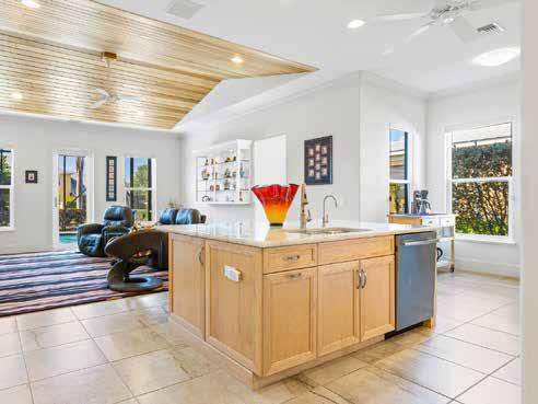 • Vaulted tongue and groove wooden ceiling with recess lights