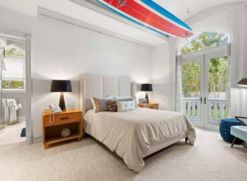 • French Doors Open to Sunset Balcony that Looks West Over the Front Exterior