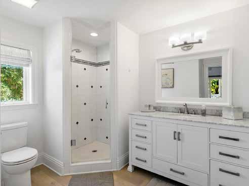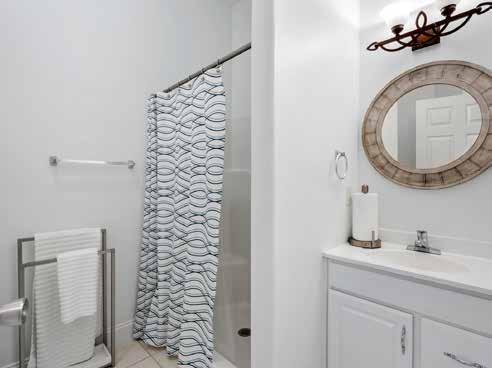 • Full Bath with Tiled Shower with Glass Door, Tiled, Quartz Countertops