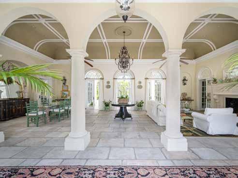 • Wood Burning Fireplace with Custom Stone Mantle Designed by Local Renowned Architect Harry Howell and Created by Rick Herpel of Palm Beach