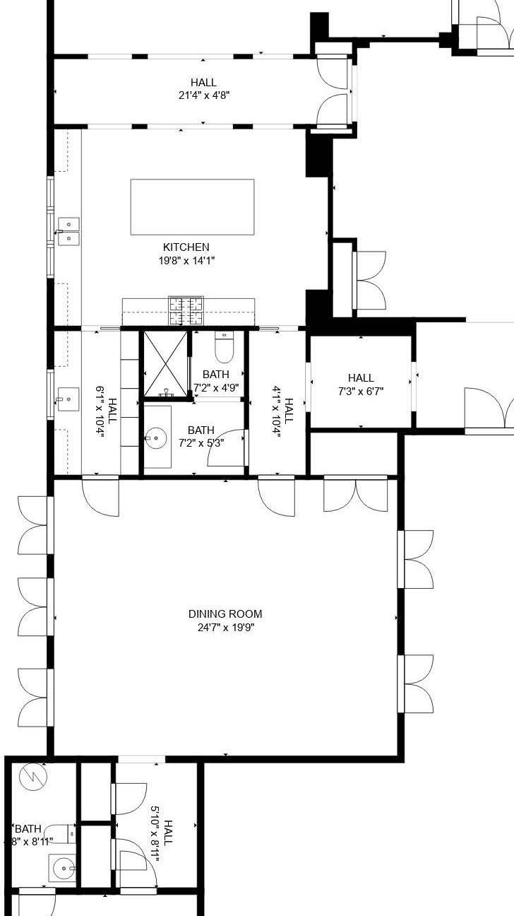 • Flanked by Two Vestibules Floored with Antique Grey Barr and Inlaid with Reclaimed Antique Wormy Chestnut Wood.