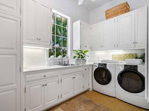 • Adjacent to Breakfast Area, Architecturally Designed and Custom-Built Shelving Over Wall-toWall Windows Surrounding Alcove Overlooking the Pool and Estuary